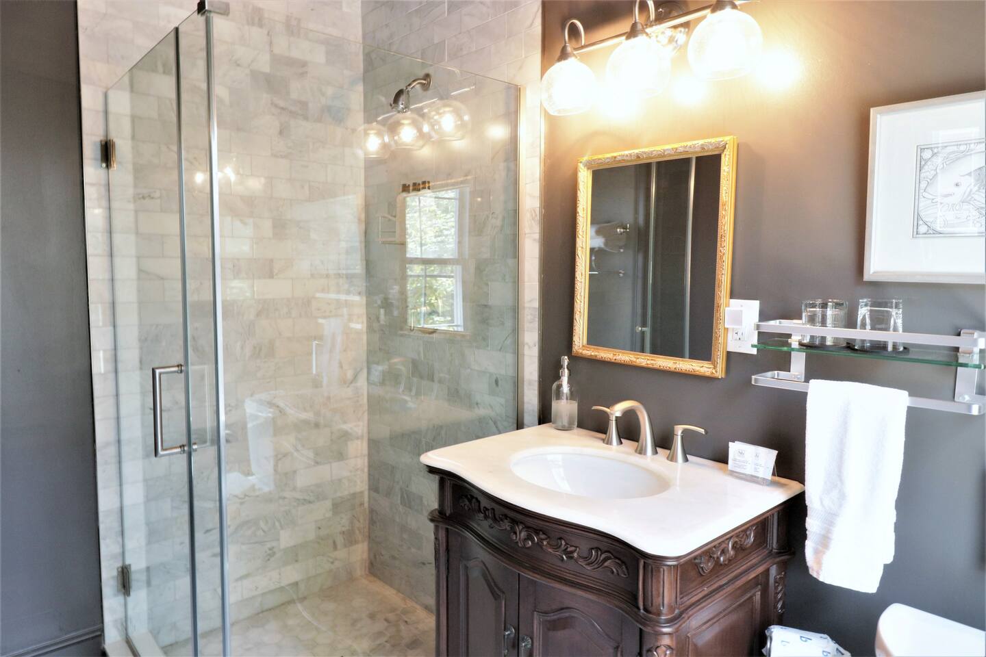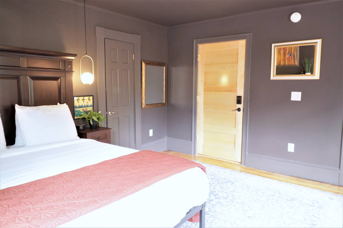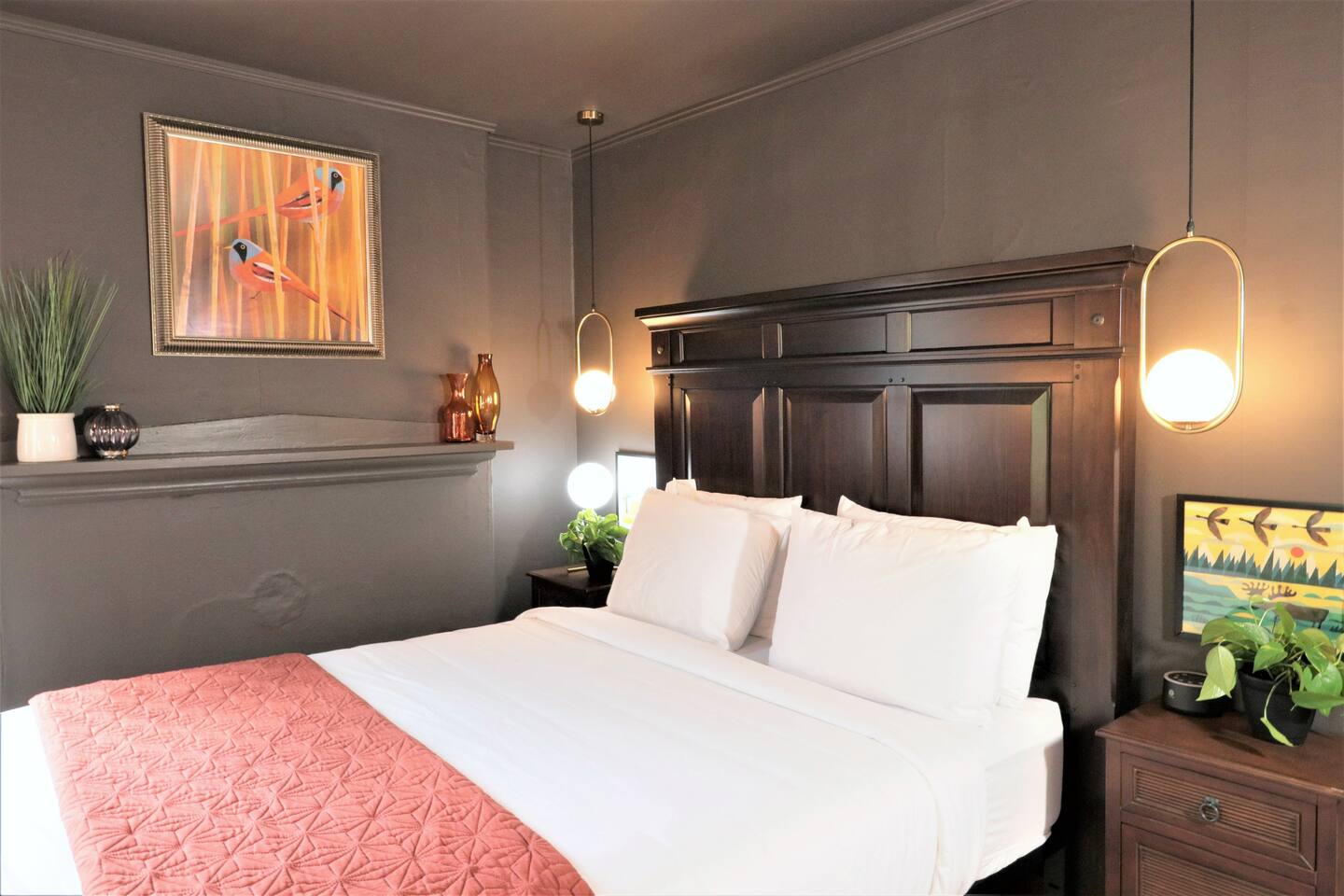 Location, Location, Location! Welcome to The Inn at Park Spring! Formerly the Park Spring Bed & Breakfast, we recently dropped the breakfast to serve Airbnb guests near and far as a boutique hotel. ROOM 3: This moody room is offset by the ample sunlight that shines through the windows overlooking both Park and Spring Streets. A queen bed, small sofa, marble bathroom, and plants complete the room. One off street parking spot is included with the room, just one block away.