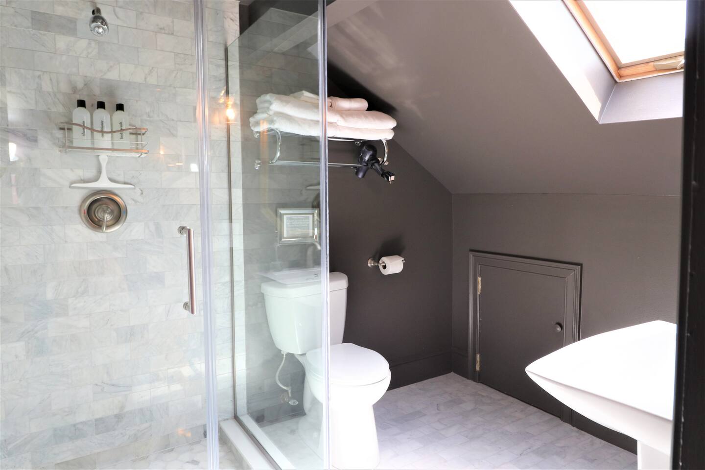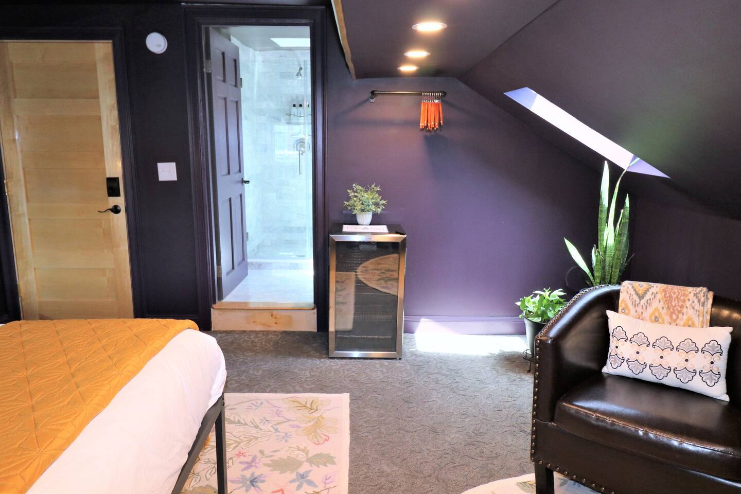 Location, Location, Location! Welcome to The Inn at Park Spring! Formerly the Park Spring Bed & Breakfast, we recently dropped the breakfast to serve Airbnb guests near and far as a boutique hotel. ROOM 5: Located on the third floor, this corner room features skylights to compliment the pitched roof. A queen sized bed, sitting area, and marble attached bathroom, add to the mystique of this bold room. The room also comes with one, off street parking spot just one block away.