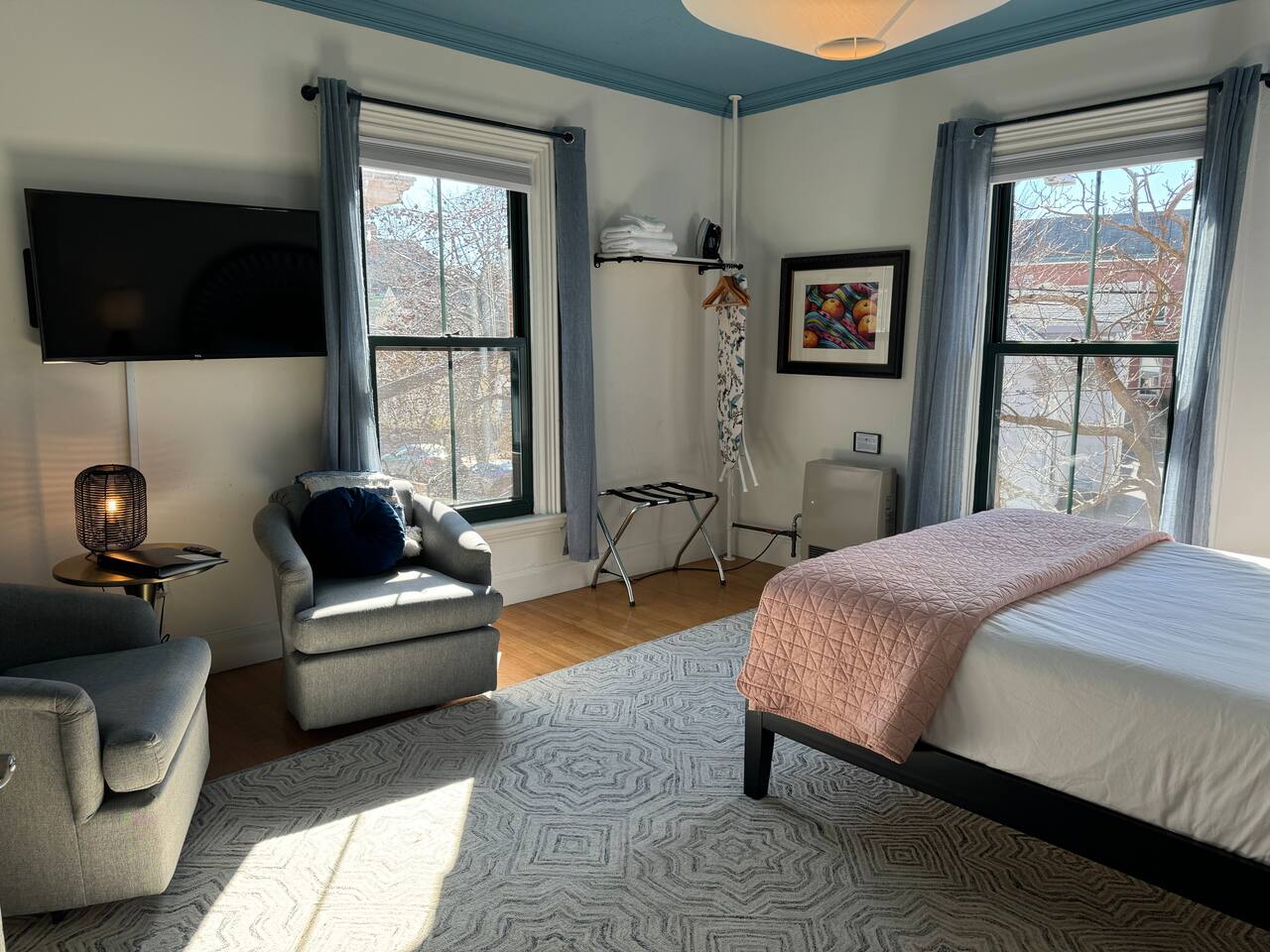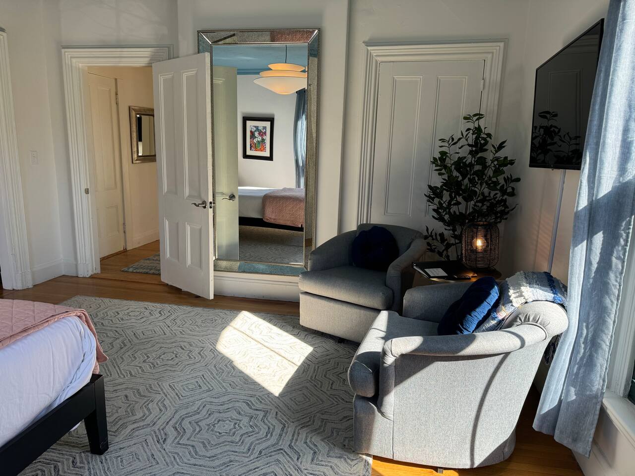 This historic home was built in the early 1800s for one of the founders of the B&M Factory (the M stands for Morrill). Up until 2021, the B&M factory had been exclusively making B&M beans and their infamous smoke stack was a staple in the Portland Skyline. What started as a single family home,the Morrill Mansion saw many other uses before morphing into a bed and breakfast in the 1990s, and recently dropped the breakfast to serve Airbnb guests near and far. Architectural details that make the home unique have been restored and modern amenities have been added to make your stay in Portland comfortable. With just eight guest rooms, our inn offers a peaceful stay satisfying social guests or those seeking solace. Each private room, with private ensuite bath, is furnished with a queen sized bed, television (no cable- we have a smart TV that you're welcome to use to log in to your own streaming services), white noise machine, a reading chair (or couch depending on the room), and a mini fridge. During the summer months (May through October) each room has a window AC unit and during heating season each room has their own Rinnai heater which allows you to control your own heat. Located on the first floor, the guest rooms share a sitting room and kitchenette which has a coffee/tea station, microwave, toaster, dishes, ice machine, and small eating/prep counter. An exposed/unlocked luggage nook is located at the base of the stairs for guests who need storage before and/or after check out. ***WINTER PARKING: If we should have a snow storm (depending on the size of the storm), the day after the storm, we may be required to remove all cars from the parking area so it can be properly cleaned out. From 9am through 3pm cars must be moved. Closest street parking with no time restrictions is about a half mile away so its a good time to explore the sites downtown or in our neighboring cities! The host will message through the Airbnb website/app the day of snow removal and any car left in the parking area will be charged a $100 fee***