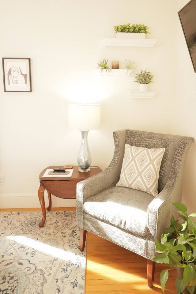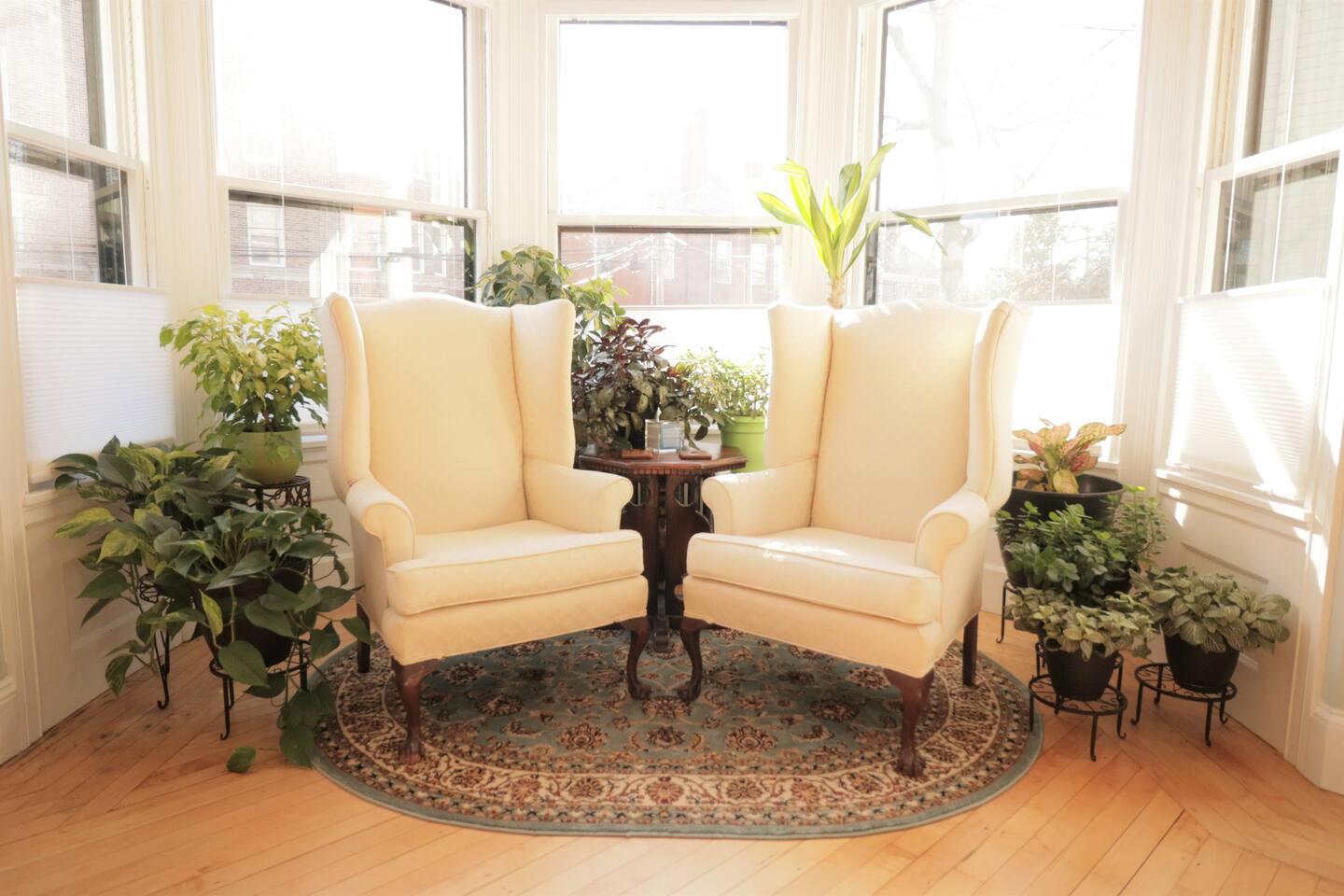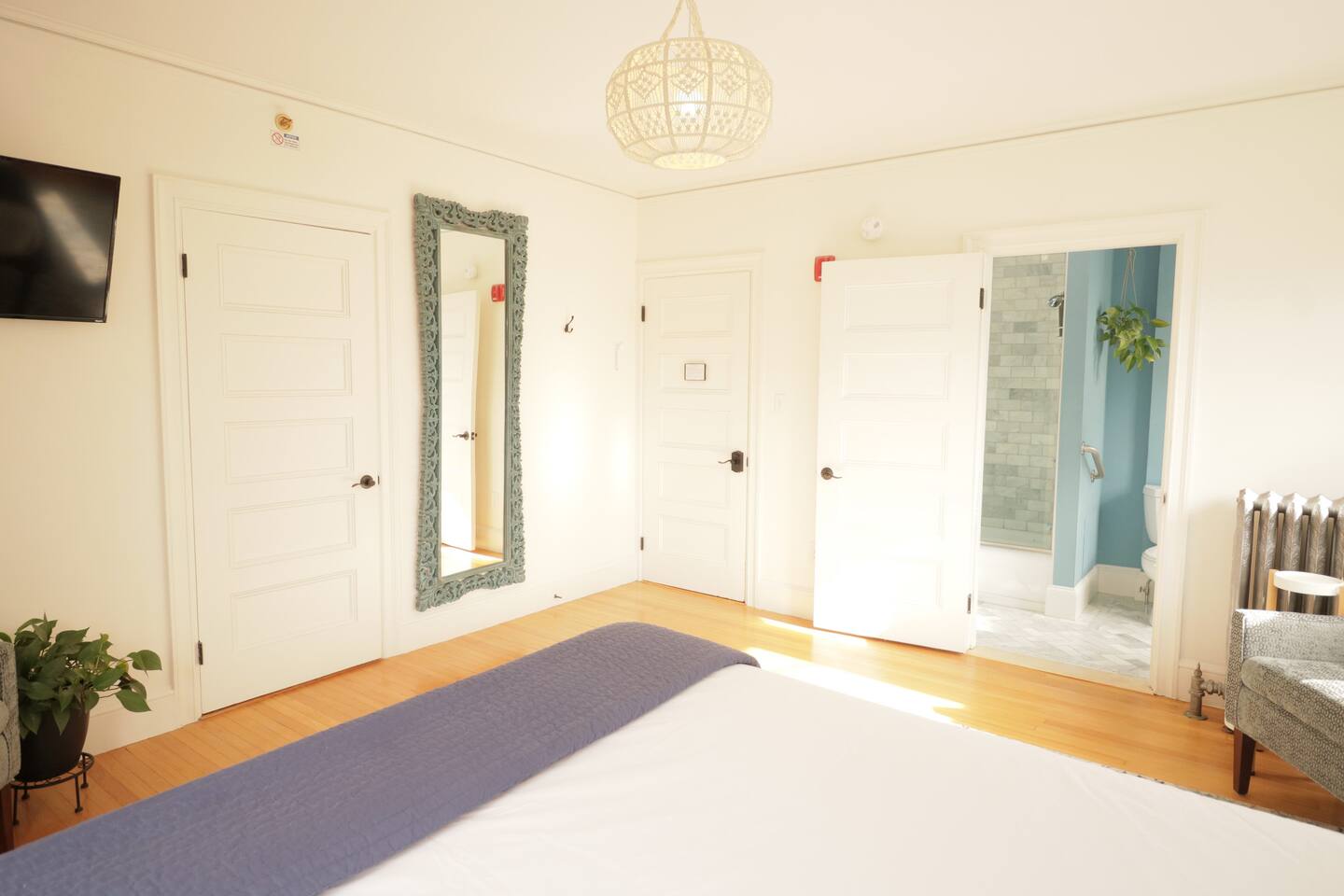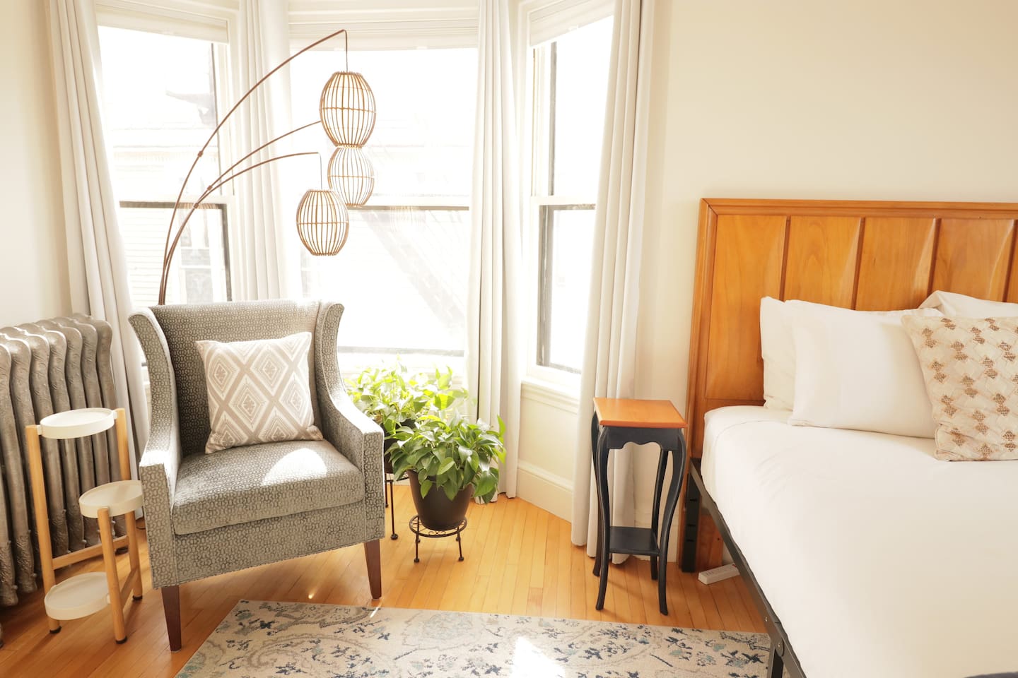Welcome to The Skolfield Inn! ROOM 3: Overlooking the gardens, this room sits in the back of the home and gets great afternoon light. Relax on the chairs or watch the sun set from your bed, this spacious room fits all your needs. One off street parking spot is provided for compact/small vehicles.