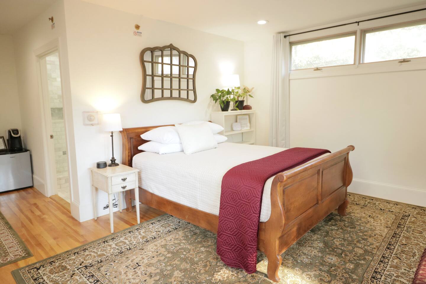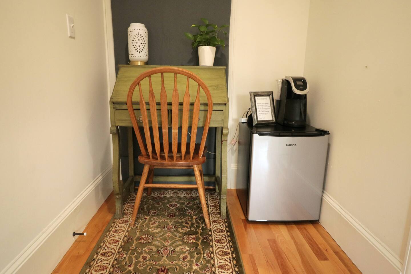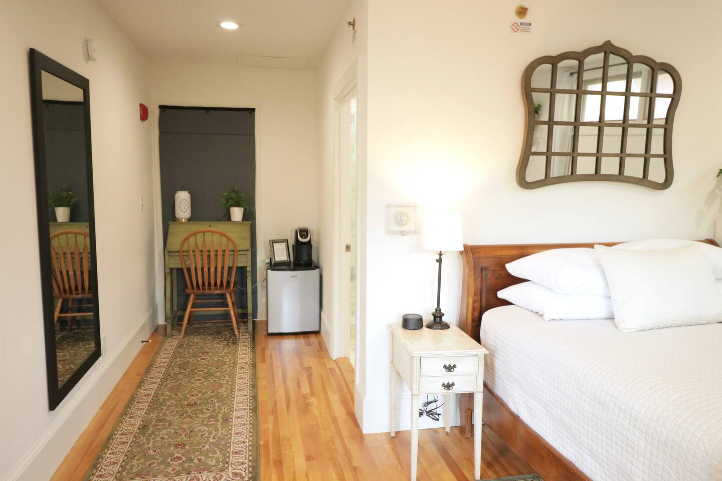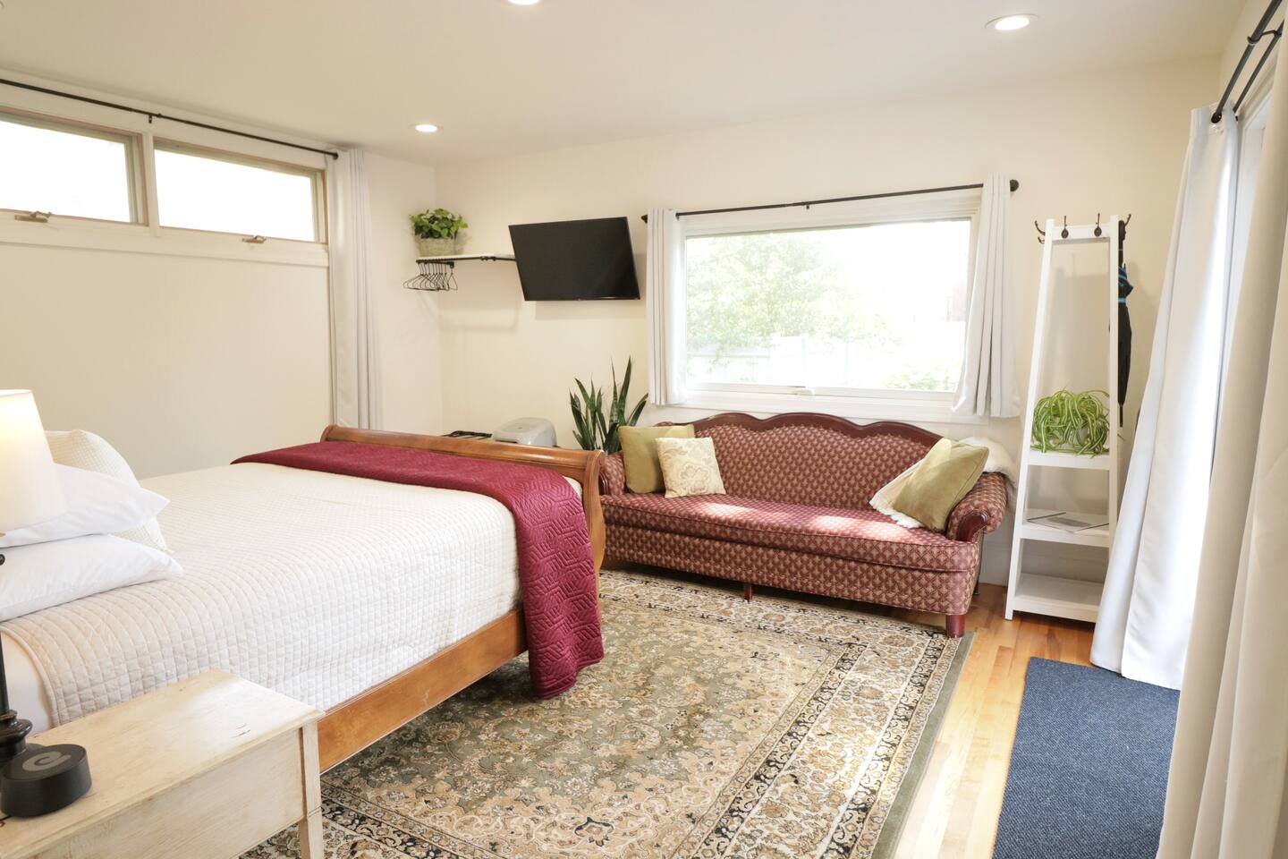 This room offers plenty of space. Relax on the couch with a book, bring your mat and squeeze in an early morning yoga session, or snuggle up in bed and watch Netflix while you contemplate the sunset from the over-sized picture window. This room is located in an inn licensed with the State of Maine. *No Off Street Parking* Parking within a half mile is hourly only 9a-5p M-F. Outside these hours & on weekends you can park on our street.